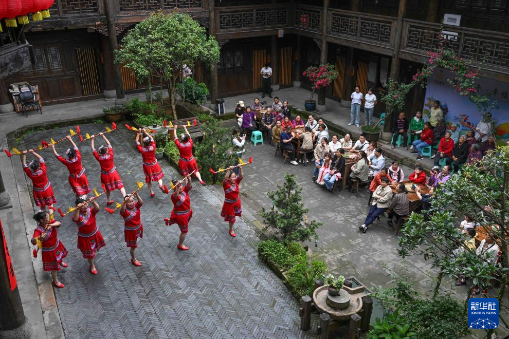 5月28日拍摄的重庆市巴南区丰盛古镇传统民俗舞蹈展示。