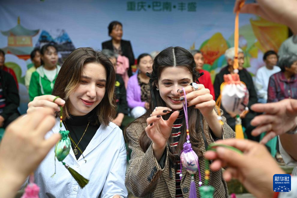 当日,重庆市巴南区丰盛古镇洋溢着浓浓的节日氛围,“粽情端午·幸福邻里”活动在此拉开帷幕。200余名古镇居民与来自重庆大学的俄罗斯、哈萨克斯坦留学生欢聚一堂,打糍粑、做香囊、品粽子、划旱龙舟,共同体验传统端午习俗。