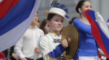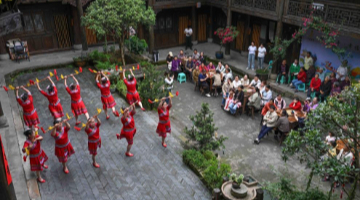 5月28日,在天津市民族文化宫,演员表演舞蹈《华夏欢歌》。