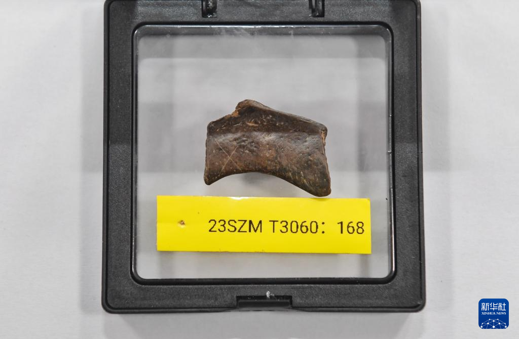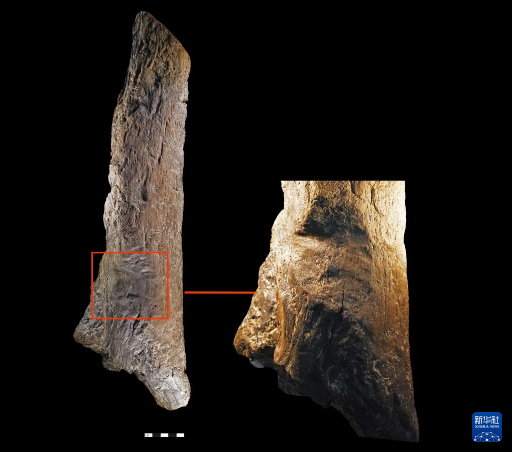 这是从四川资阳濛溪河遗址群出土的有X形划痕的骨器(2023年12月5日摄)。新华社记者 刘坤 摄