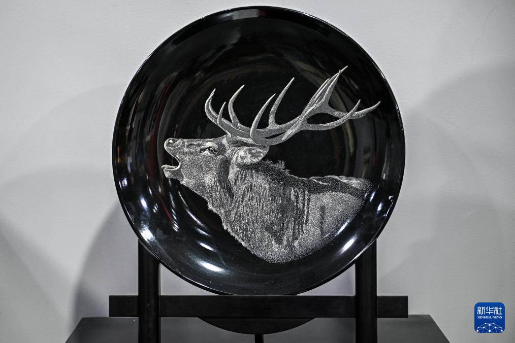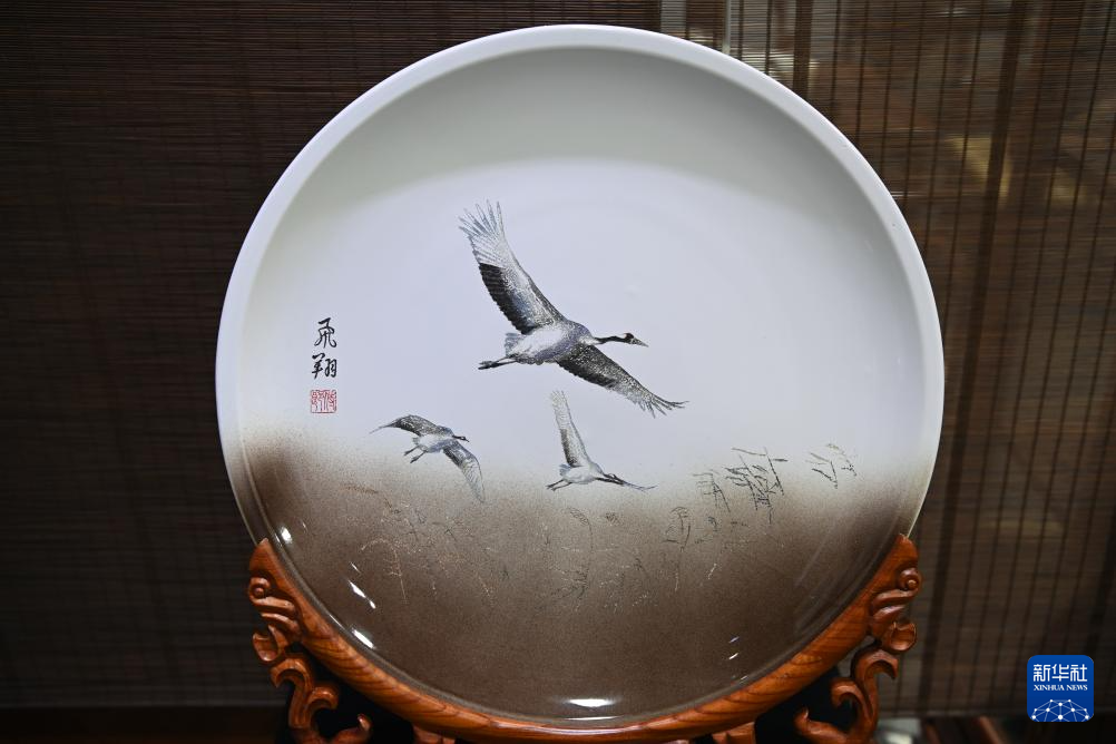 6月6日拍摄的陈银付的瓷刻作品《飞翔》。