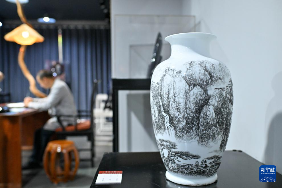 6月6日拍摄的陈银付团队制作的瓷刻摆件。