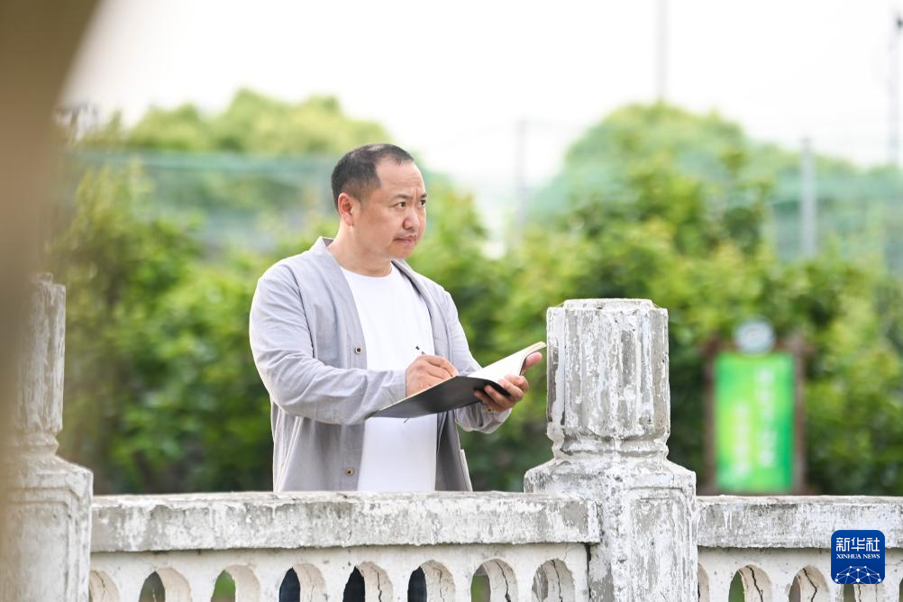 6月6日,陈银付在江苏省盐城大丰区户外写生,汲取创作灵感。
