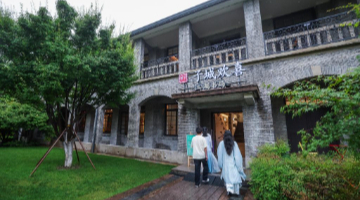6月21日,观众在北京市海淀区三山五园文化艺术中心参观薪传国粹——“万印楼”新藏当代国际篆刻精品展。