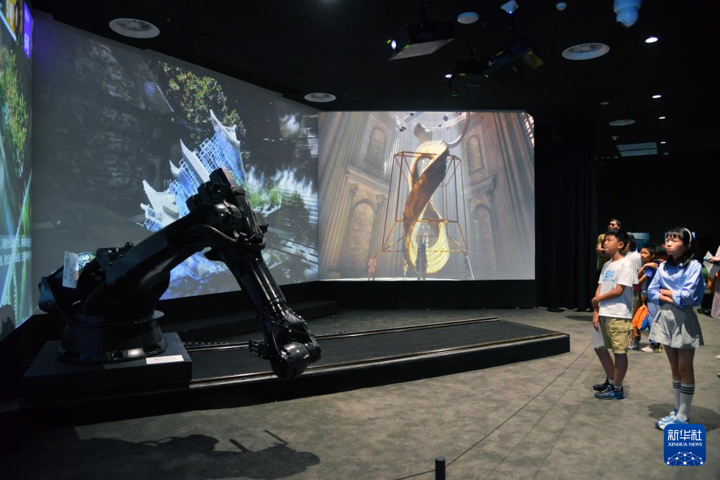 6月21日,观众在北京市海淀区三山五园文化艺术中心参观2025亚洲数字艺术展。