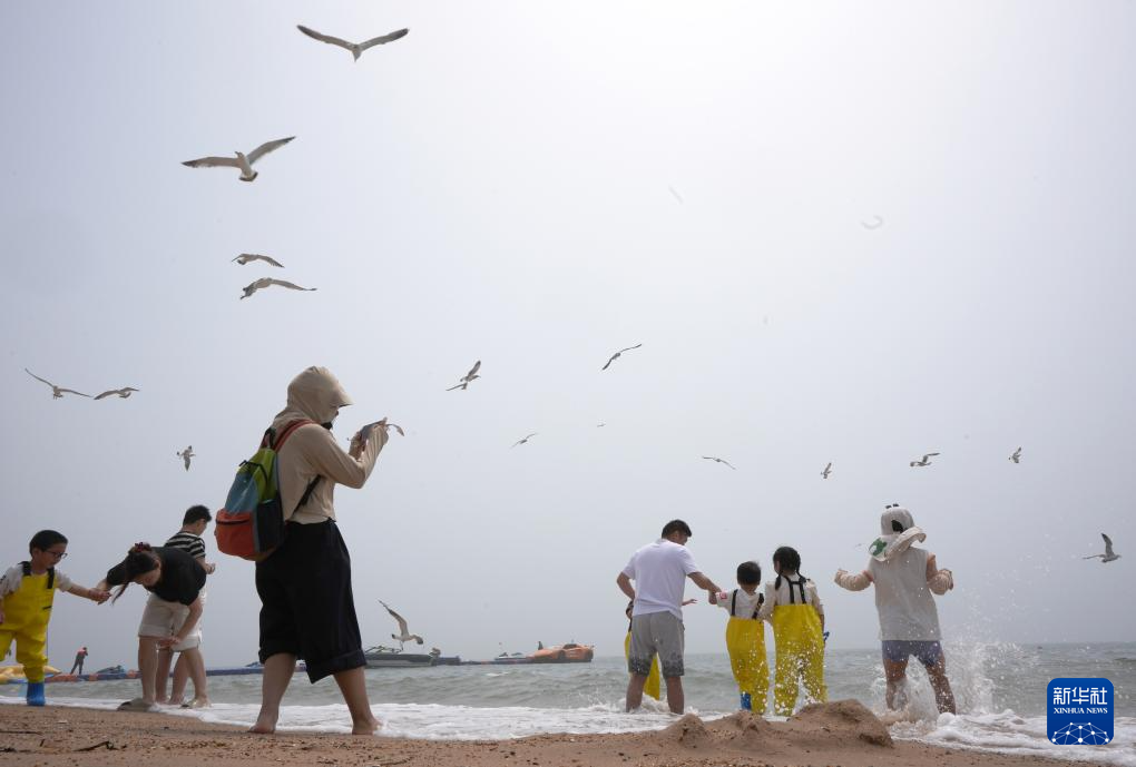 6月28日,游客在大连金石滩快乐海岸游玩。