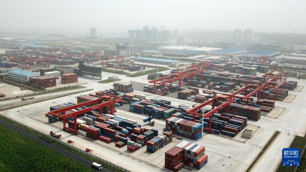 2023年4月12日拍摄的城陵矶港国际集装箱码头(无人机照片)。新华社记者 陈振海 摄