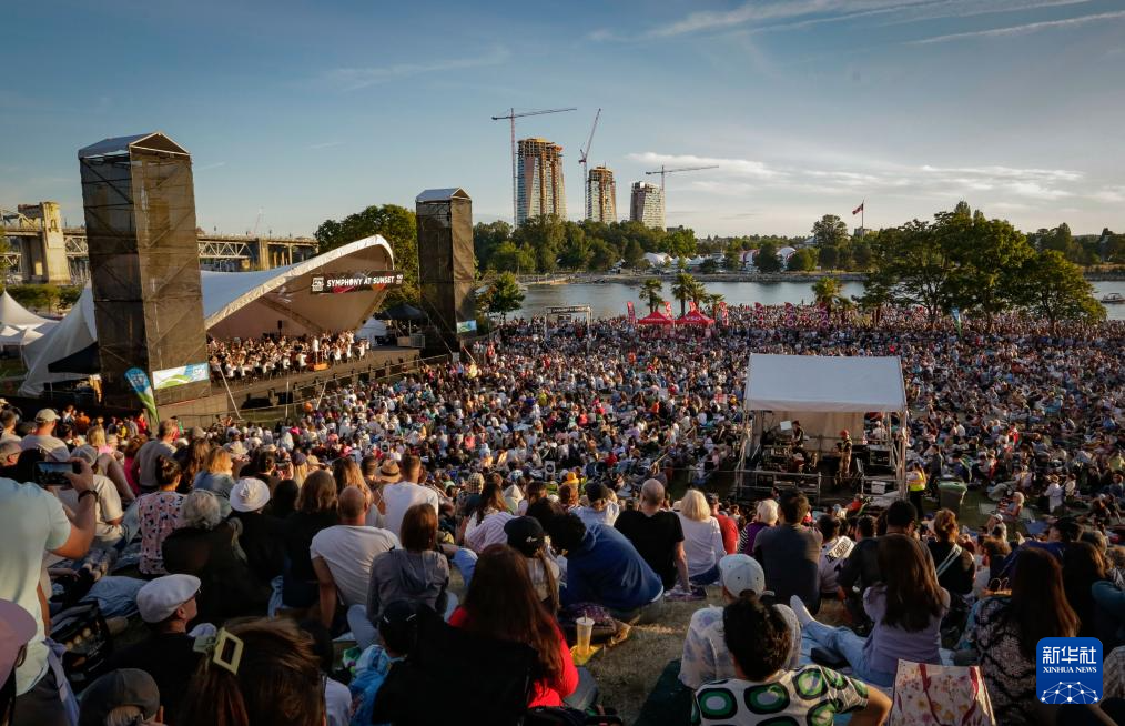 当日,加拿大温哥华举办“日落交响音乐会”,吸引近万名市民和游客齐聚海滨,欣赏这场露天音乐盛宴。