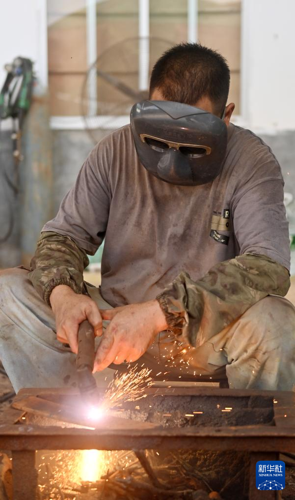 7月16日,广西隆安县雁江镇红良村,村民凌维军在自己的作坊里打制铁具。