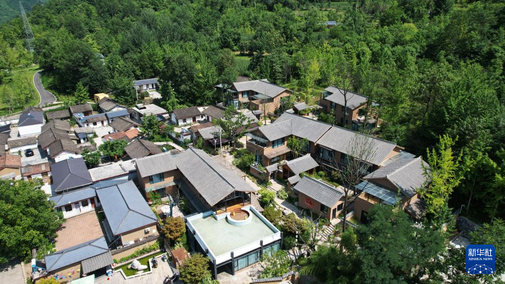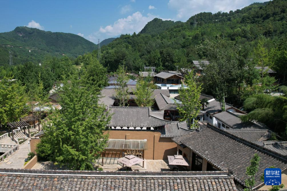 这是7月15日拍摄的田河村“银杏梦谷”民宿(无人机照片)。