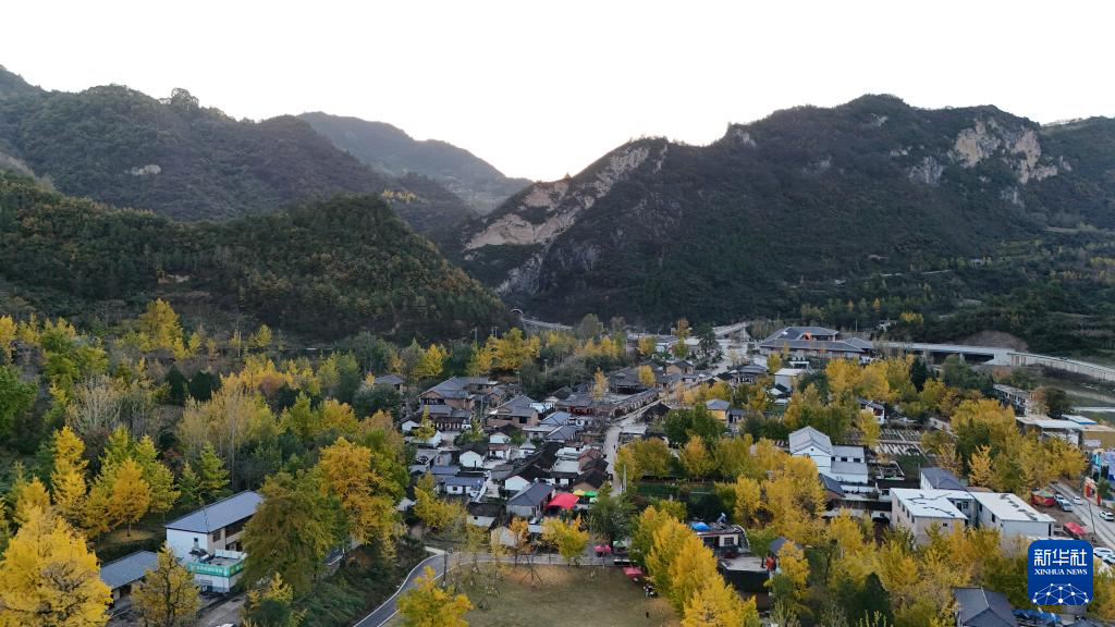 这是2024年11月1日拍摄的田河村秋景(无人机照片)。