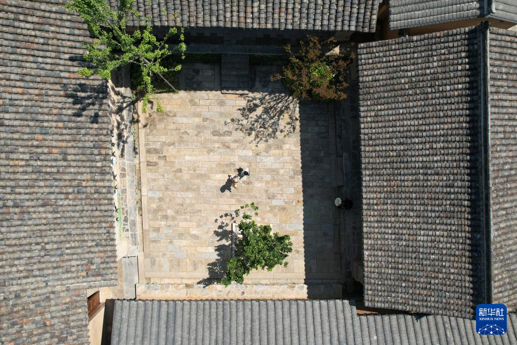 游客走在田河村古院落中(7月15日摄,无人机照片)。