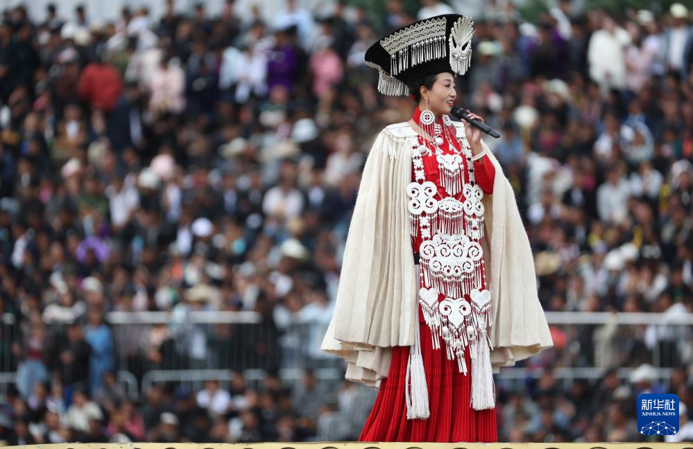 彝族歌手海日乌芝在2025年彝族传统火把节开幕式演唱(7月22日摄)。