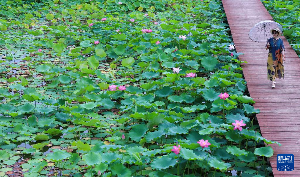 7月1日在江苏省淮安市金湖县起点公园拍摄的荷花。