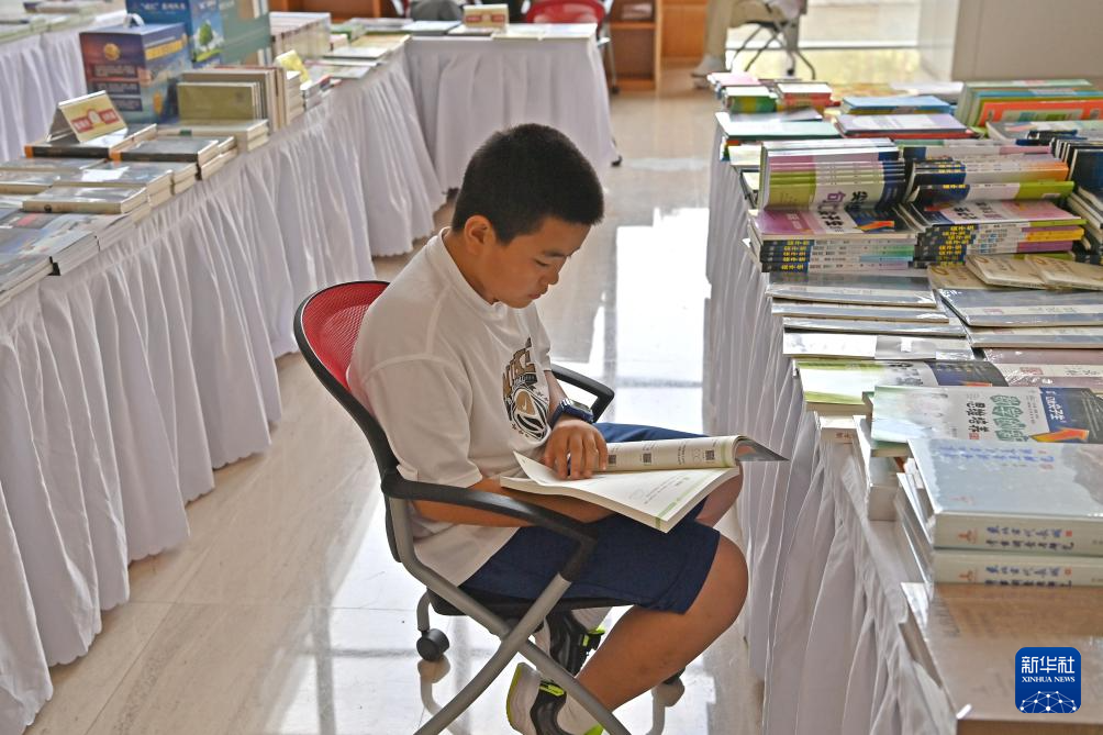 8月15日,读者在图书博览会阅览图书。
