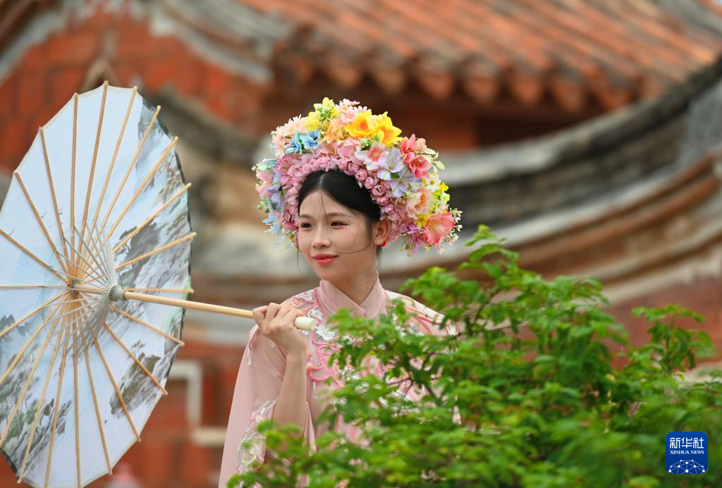 8月19日,游客在福建晋江梧林村体验旅拍。