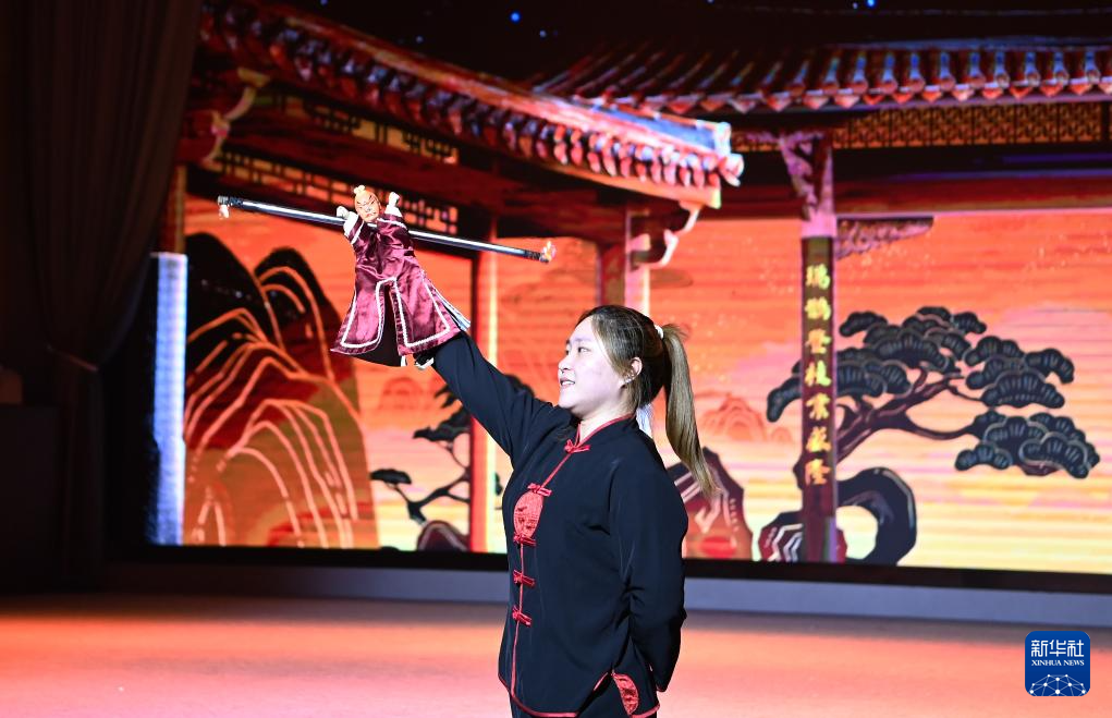 8月19日,在福建晋江梧林村,演员在融合情景剧《侨批往事》中进行掌中木偶戏表演。