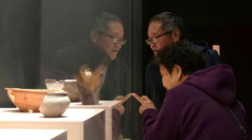 9月27日,一名小朋友在比赛现场观看龙形面塑。