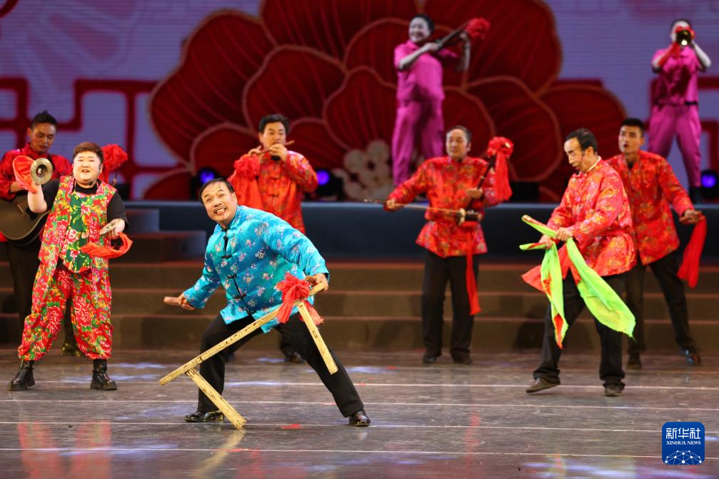 甘肃省金昌市永昌县文化馆的演员在甘肃省群众文艺展演展播活动首场演出中表演地方小曲(1月7日摄)。