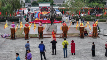2月26日,在贵州省六盘水市六枝特区梭戛苗族彝族回族乡高兴村跳花场,苗族群众在举行请花树仪式。