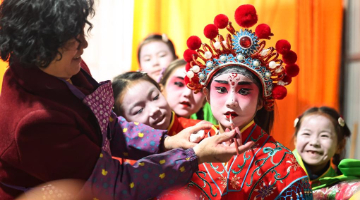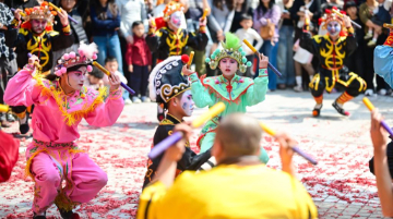 2月26日,在贵州省六盘水市六枝特区梭戛苗族彝族回族乡高兴村跳花场,小朋友们在进行巡游。