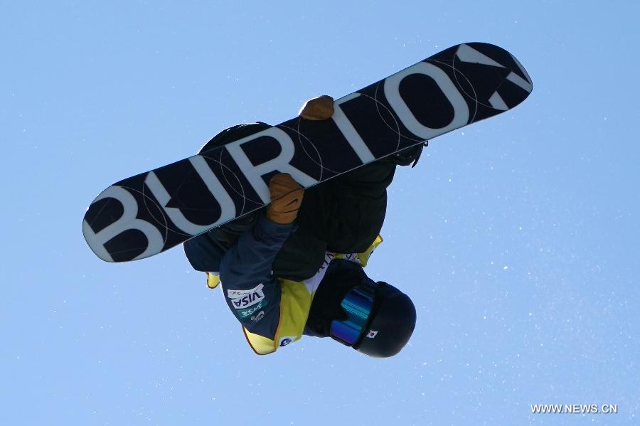 Japan's Hirano Ayumu competes during the men's competition of 2017-2018 FIS Snowboard Halfpipe World Cup held at Genting Resort Secret Garden in Chongli District of Zhangjiakou City, north China's Hebei Province, Dec. 21, 2017. Hirano Ayumu claimed the title of the event with 97.75 points.(Xinhua/Ju Huanzong)