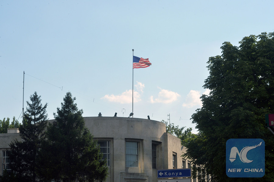 (FILE PHOTO)Photo taken on July 23, 2014 shows the exterior view of the U.S. embassy in Ankara, Turkey. (Xinhua/Mustafa Kaya)