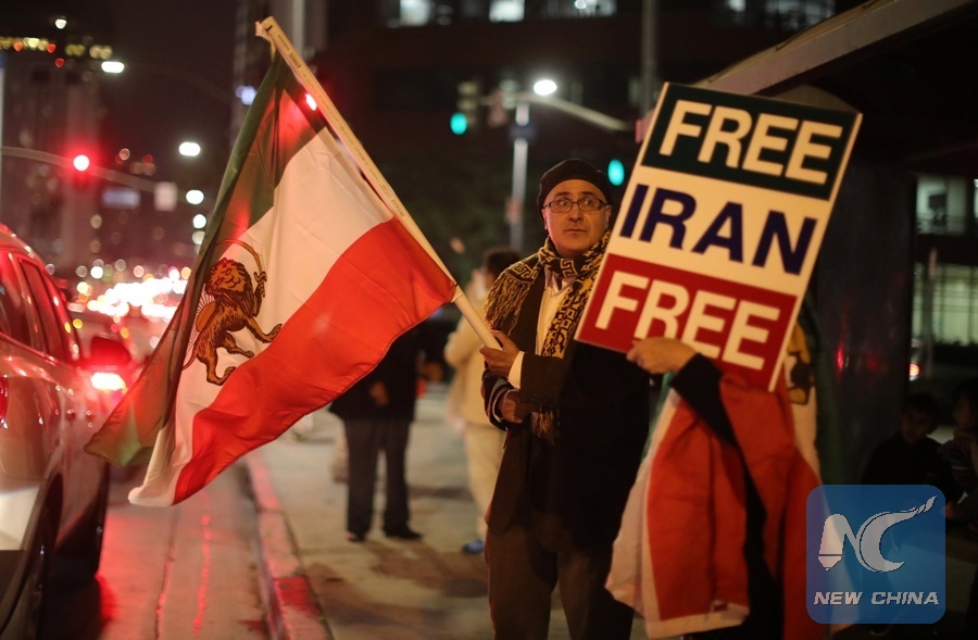 People protest in Los Angeles, California, U.S., in support of anti-government protesters in Iran, Jan. 3, 2018. (Xinhua/REUTERS)