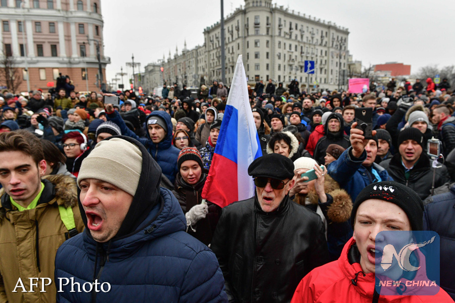 MOSCOW, Jan. 28 (Xinhua) -- Russian opposition leader Alexei Navalny was detained while attending a protest rally for a boycott of the upcoming presidential race, the Moscow City Police said Sunday.