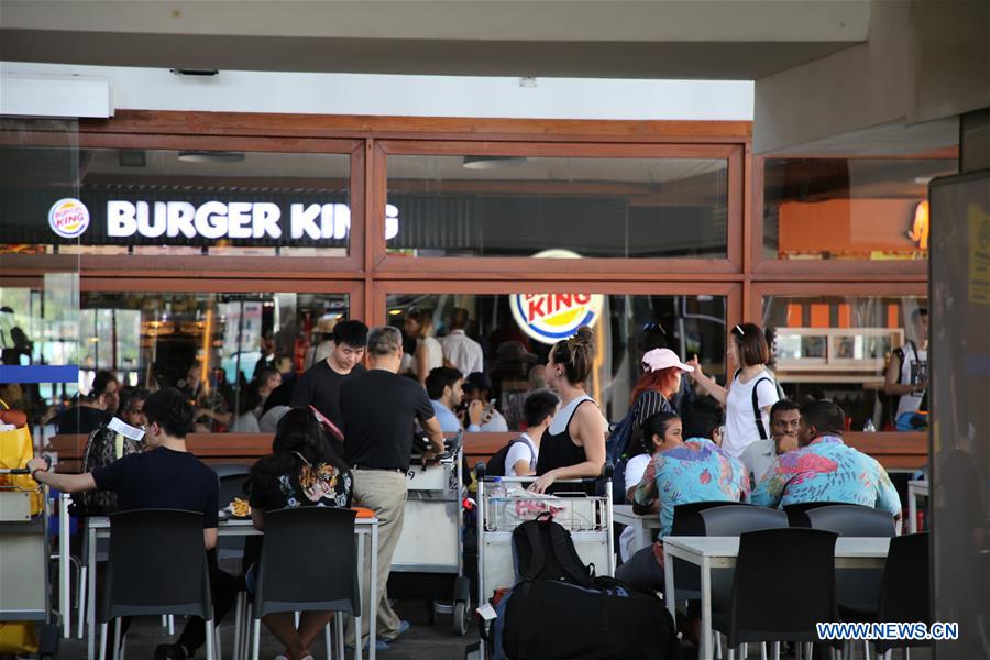 Tourists take a rest at the airport in Male, Maldives, Feb. 7, 2018. Maldivian President Abdulla Yameen on Monday evening declared a state of emergency amid political crisis in the country. (Xinhua/Zhu Ruiqing)