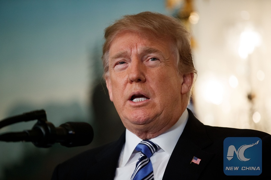 U.S. President Donald Trump speaks in a national address regarding the mass shooting in Parkland, Florida, at the White House in Washington D.C., the United States, on Feb. 15, 2018. Donald Trump said here on Thursday that he is making plan to visit shooting scene in Parkland, Florida. (Xinhua/Ting Shen)