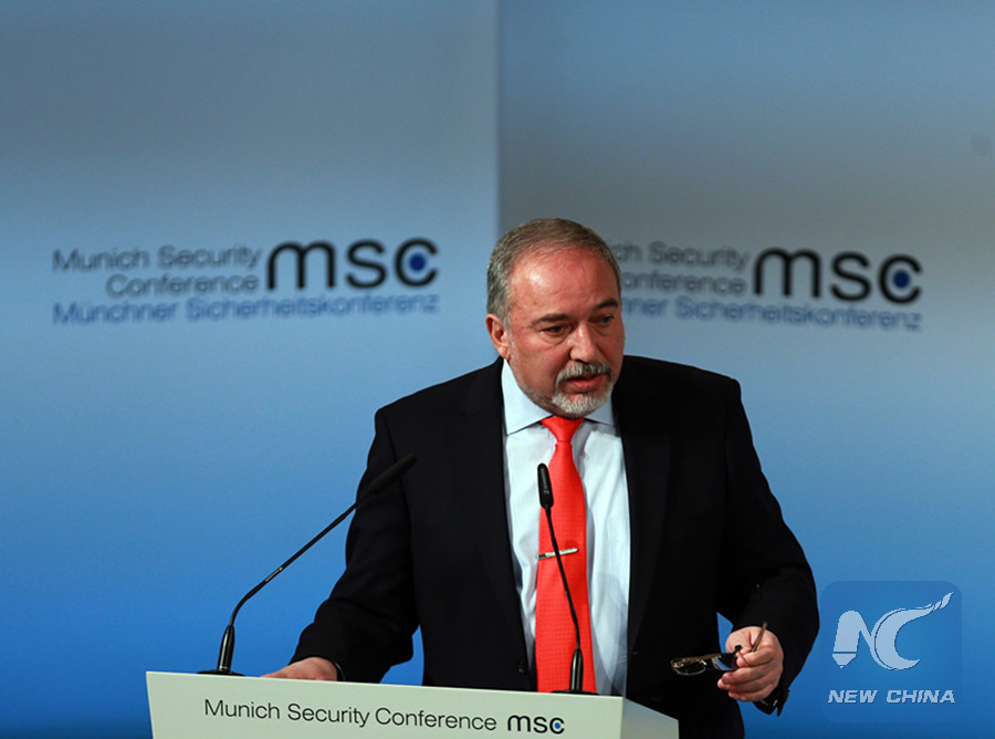 In this file photo, Israeli Defense Minister Avigdor Lieberman delivered a speech at the 53rd Munich Security Conference in Munich, southern Germany, Feb. 19, 2017. (Xinhua/Luo Huanhuan)
