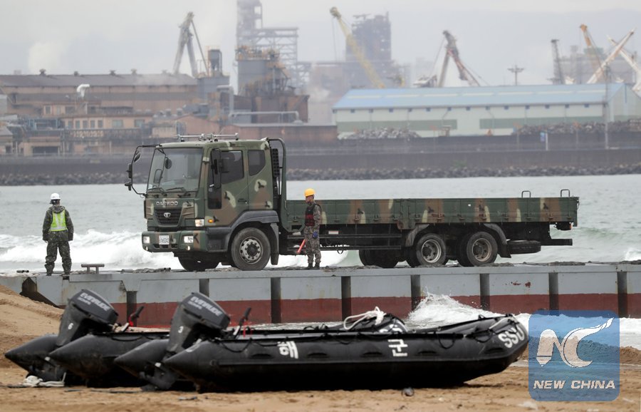Photo taken on April 11, 2017 shows a military vehicle during the U.S.-South Korea joint Exercise Operation Pacific Reach in Pohang, South Korea. (Xinhua/Lee Sang-ho)