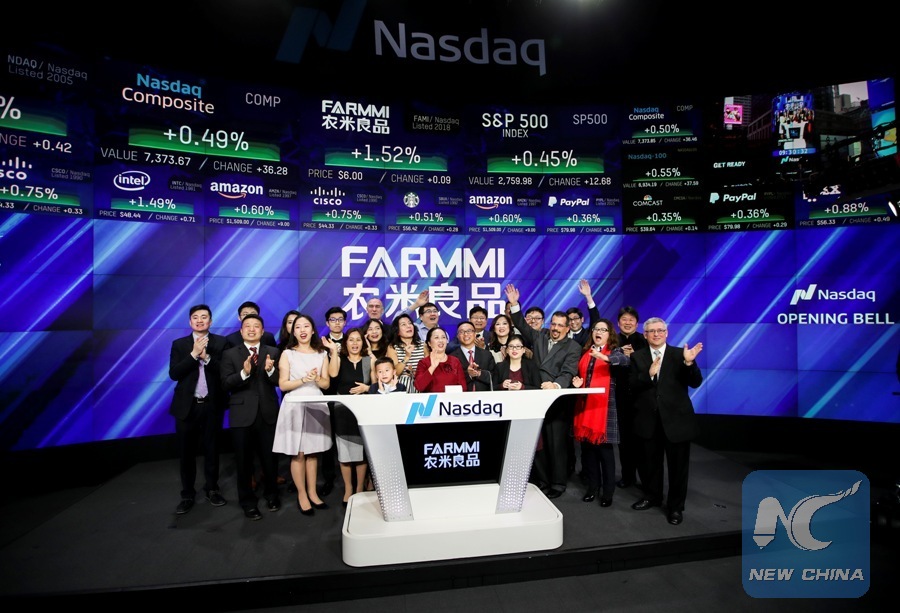 NEW YORK, Feb. 26 (Xinhua) -- Chinese agricultural products supplier Farmmi, Inc. on Monday rang the Nasdaq Stock Market opening bell in celebration of its Initial Public Offerings (IPO).