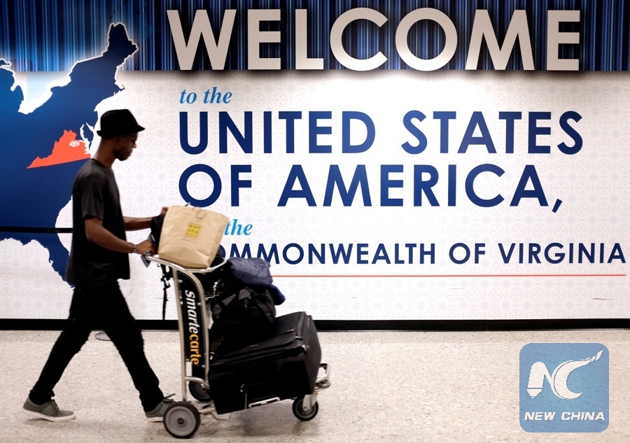 A man exits the transit area after clearing immigration and customs on arrival at Dulles International Airport in Dulles, Virginia, U.S., Sept. 24, 2017. (Xinhua/REUTERS)