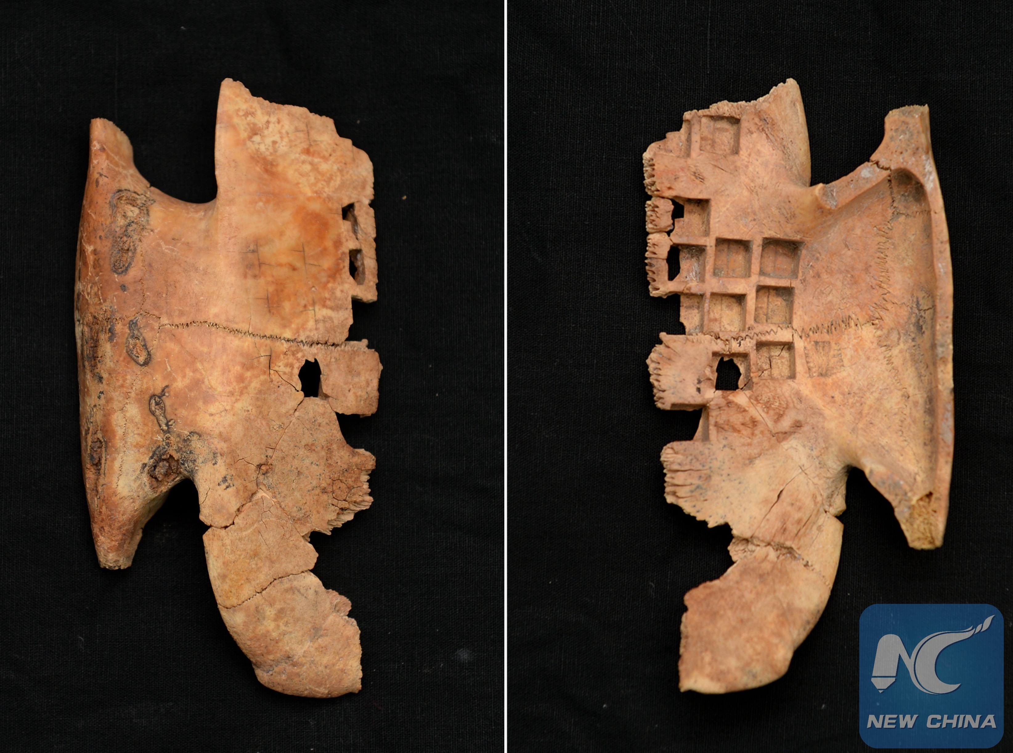 A turtle plastron shell was also unearthed from the Qin Dynasty tomb in northwest China's Shaanxi Province on March 18, 2018.(XINHUA/Li Yibo)