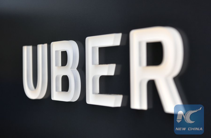 File photo taken on Feb. 5, 2018 shows the Uber logo outside the Uber Corporate Headquarters building in San Francisco, California. (Xinhua/AFP)