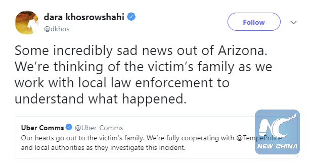 Uber CEO Dara Khosrowshahi tweets on the incident.