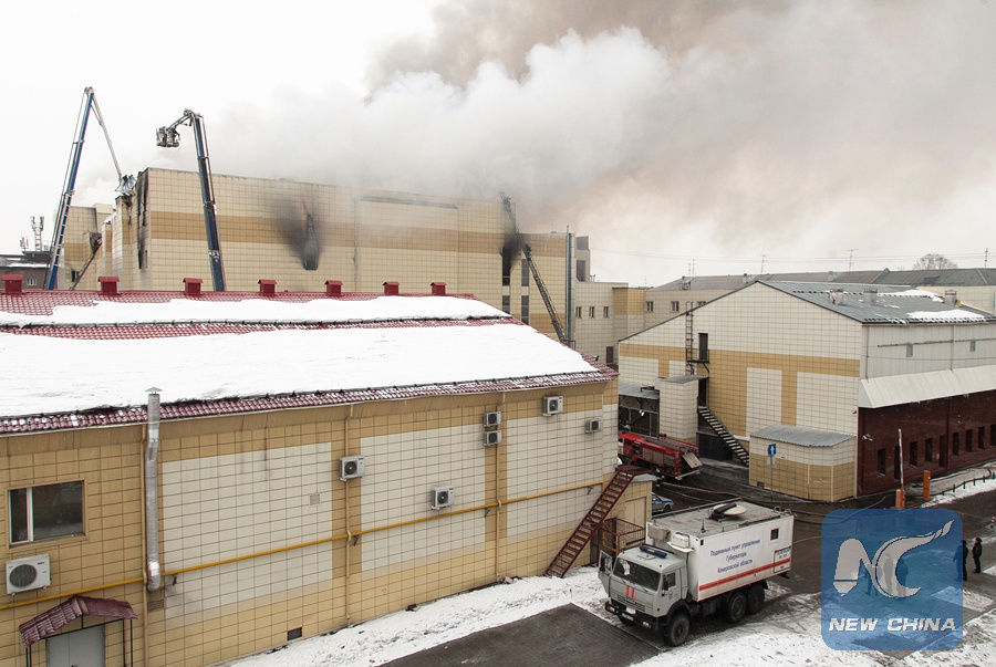 MOSCOW, March 26 (Xinhua) -- A total of 64 people have been confirmed dead in a major fire that broke out at a shopping mall in Kemerovo city in southwestern Siberia one day ago, the Russian Investigative Committee said Monday.