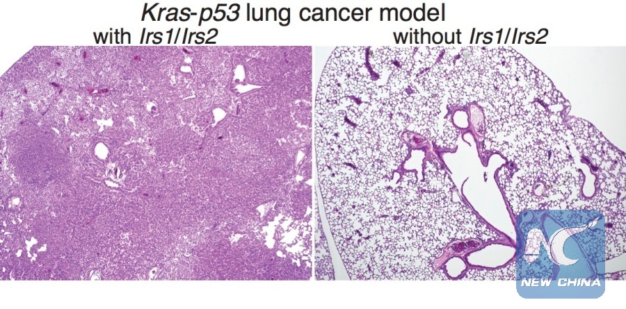 Kalaany's team used two groups of mice with KRAS-driven lung cancer. The second group has been deleted with two key genes, known as Irs1 and Irs2, which encode so-called "adaptor" proteins that are necessary for insulin/IGF-1 signaling.