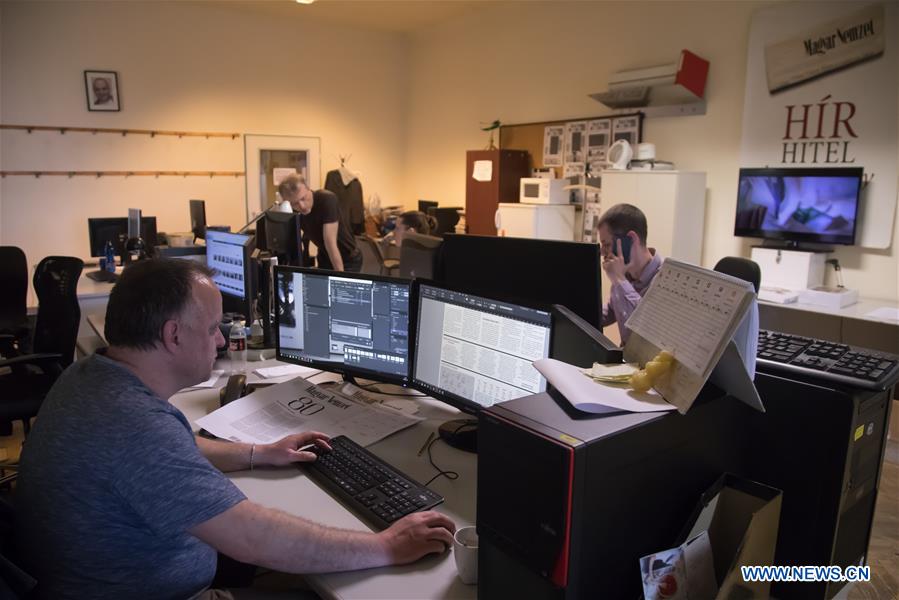 Editors work on the last issue of main Hungarian newspaper Magyar Nemzet, Hungarian Nation, in Budapest, Hungary on April 10, 2018. Hungary's main newspaper Magyar Nemzet was published here on Wednesday for the last time after 80 years in circulation, owners said in a statement in the print and online versions of the paper. (Xinhua/Attila Volgyi)