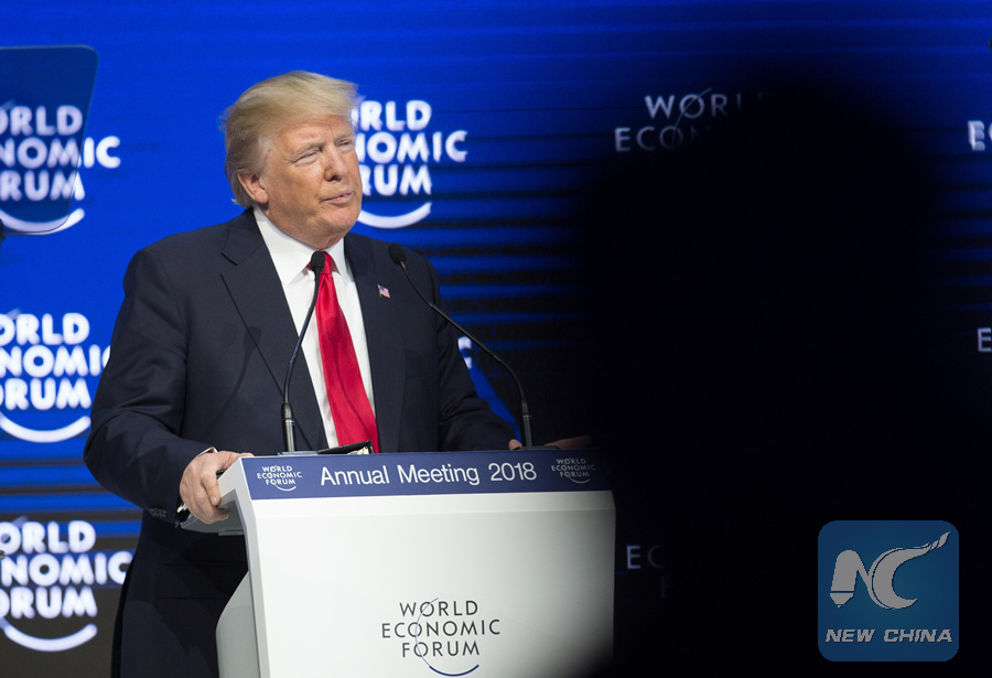 U.S. President Donald Trump delivers a speech during the 48th annual meeting of the World Economic Forum (WEF) in Davos, Switzerland, in the file photo taken on Jan. 26, 2018. (Xinhua/Xu Jinquan)