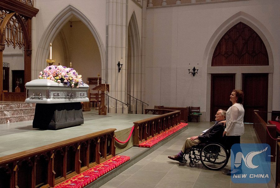 HOUSTON, April 21 (Xinhua) -- Funeral for the late former First Lady Barbara Bush was held Saturday in a Houston church where four former presidents and other dignitaries attended.