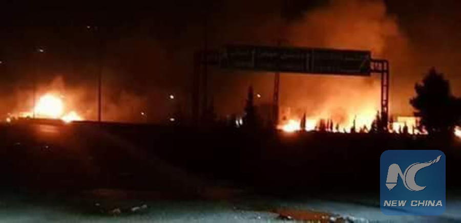 DAMASCUS, May 8 (Xinhua) -- The Syrian air defenses responded to an Israeli missile strike in the capital Damascus' southern town of Kisweh on Tuesday evening, destroying two missiles.