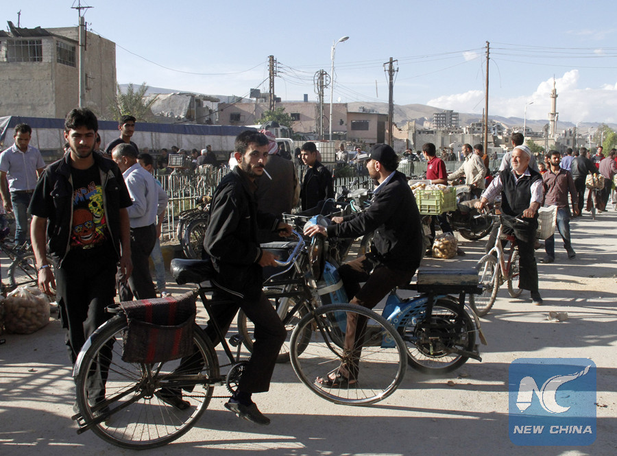 Syrians ride bicycles in Douma district east of the capital Damascus on May 13, 2018. (Xinhua/Hummam Sheikh Ali)