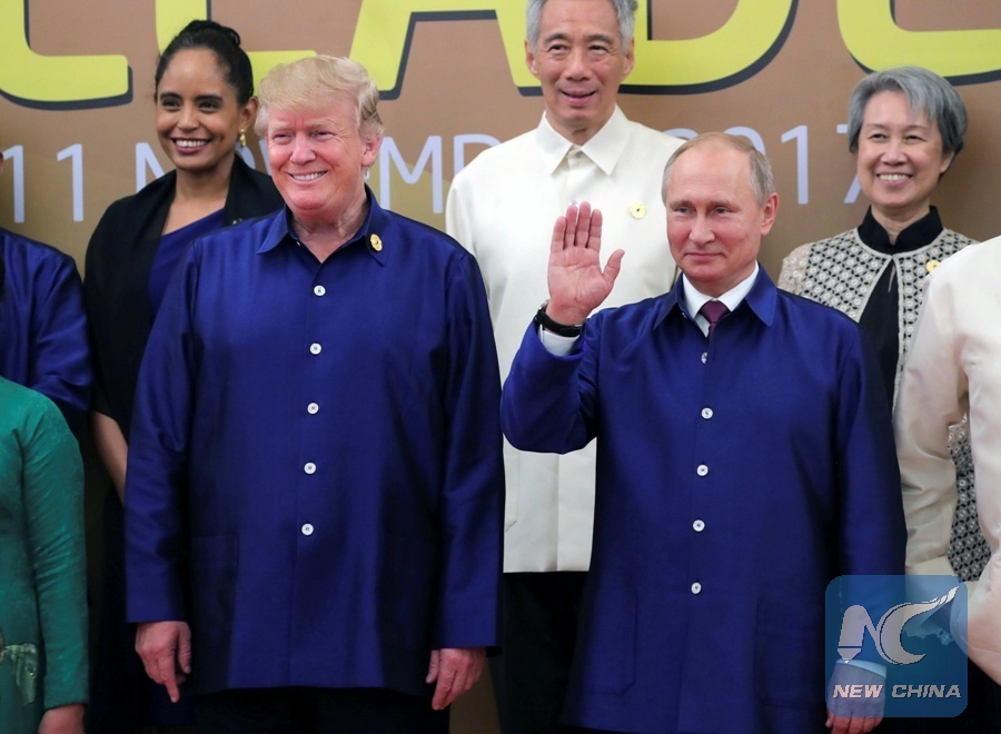File Photo: U.S. President Donald Trump and Russian President Vladimir Putin take part in a family photo at the APEC summit in Danang, Vietnam, Nov. 10, 2017. (Xinhua/REUTERS)