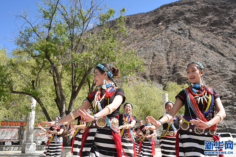 Dance “Soul of Hornbills” is performed in Douyu Township of?Longzi County?in?Shannan City, southwest China's Tibet Autonomous Region, May 10, 2018. (Xinhuanet/ Ma Yimeng)?