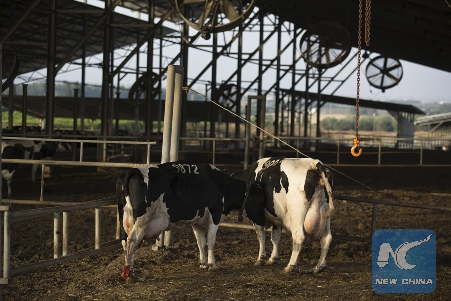 File Photo: Cows wearing digital collars stand at a dairy farm in Kibbutz Yad Mordechai, southern Israel, that feeds data to a national database which monitors the output, health, genetics and fertility of every cow in Israel, May 19, 2015. (Xinhua/REUTERS)