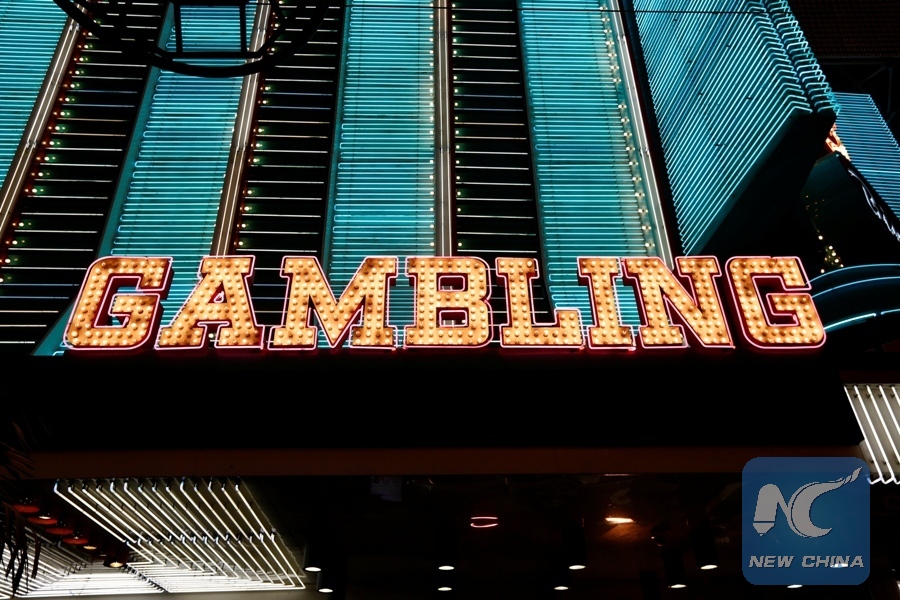 A sign on Binion's Gambling Hall and Hotel is seen on Fremont Street in downtown Las Vegas, Nevada, U.S., Feb. 28, 2018. (Xinhua/REUTERS)