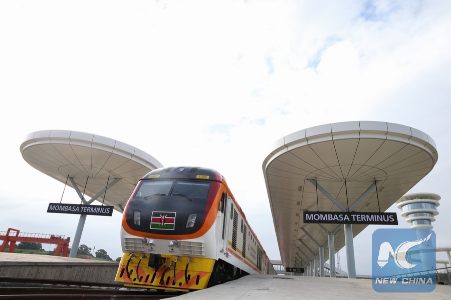 A train is seen at Mombasa Terminus of Mombasa-Nairobi Standard Gauge Railway, in Kenya, on June 1, 2017. (Xinhua/Pan Siwei)